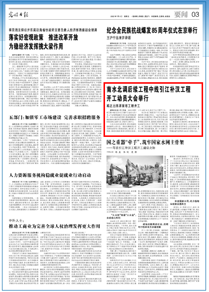 7月7日,南水北調中線后續水源——引江補漢工程開工。