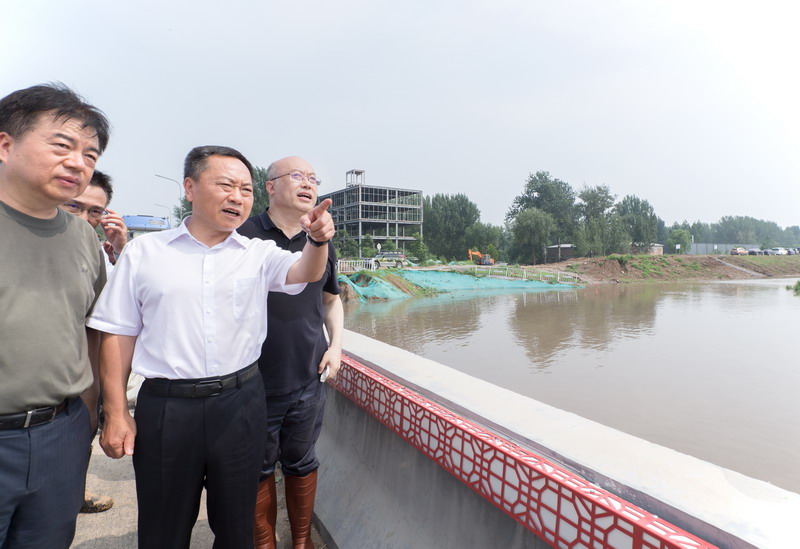 李國英先后來到永定河左堤趙村險工、大清河水系北拒馬河與南水北調中線工程交叉段、白溝河左堤東茨村段、南拒馬河右堤東馬營段、新蓋房樞紐,詳細了解洪水演進情況,現場檢查防險、搶險和流域防洪工程體系調度工作。
