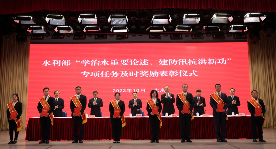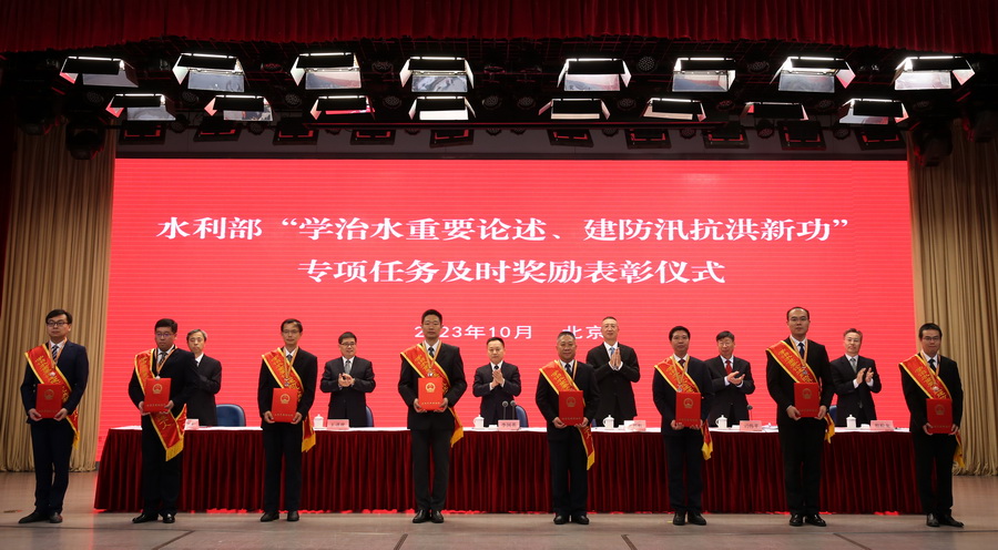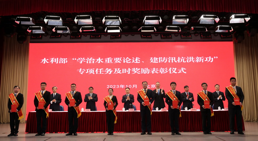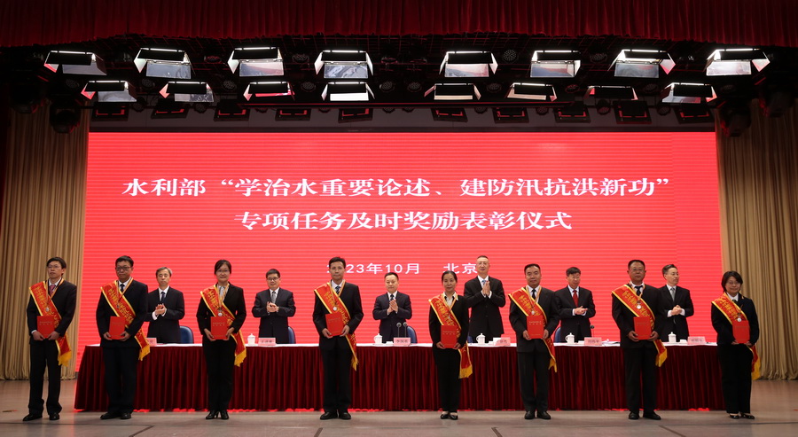 劉偉平宣讀了《水利部關于對在“學治水重要論述、建防汛抗洪新功”專項任務中表現突出的集體和個人給予記功嘉獎的決定》,為海河水利委員會水旱災害防御處、松遼水利委員會水旱災害防御處等21個先進集體和韓瑞光、梁團豪等139名先進個人進行記功嘉獎。部領導和總師為記功集體代表頒發獎牌,為記功個人佩戴獎章、頒發證書,受到表彰的3個集體代表和4名個人代表發言。