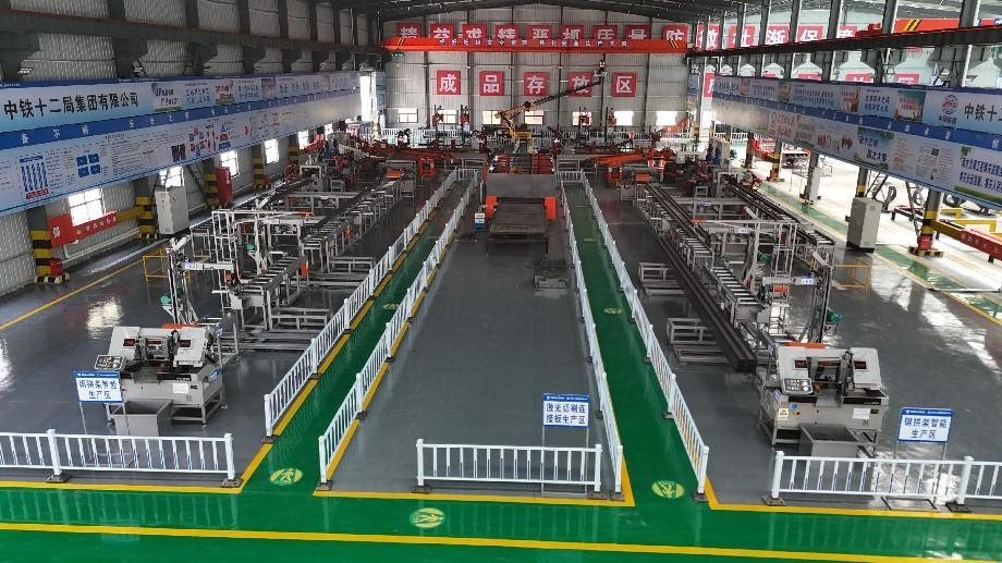 生產過程一人操作,一鍵啟動、全自動完成……該加工廠遵循功能齊全、工藝先進、技術領先、質量可靠、高效智能的原則,配備了鋼拱架智能生產線2套、鋼筋網片自動生產線1套、小導管自動生產線1套、砂漿錨桿自動生產線1套、數控光纖激光切割機1臺等國內施工行業鋼構件加工方面領先的生產設備,形成了起重運輸、鋼拱架加工、網片加工、小導管及管棚加工、砂漿錨桿加工等6條自動化加工生產線,實現了鋼構件全流程自動化加工生產。