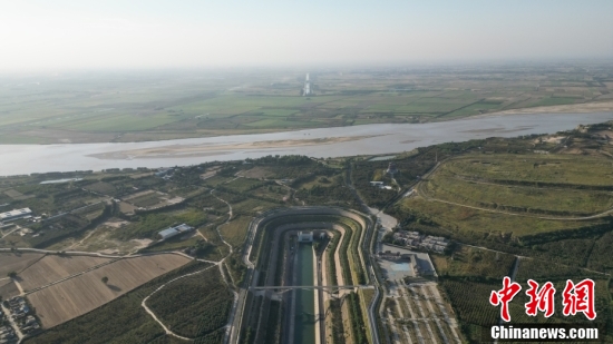 南水北調中線總干渠穿黃隧洞入口處。(無人機照片)