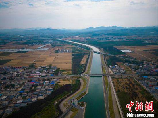 圖為一渠“南水”沿蜿蜒的總干渠北流進入沙河渡槽。 ( 闞力 攝)
